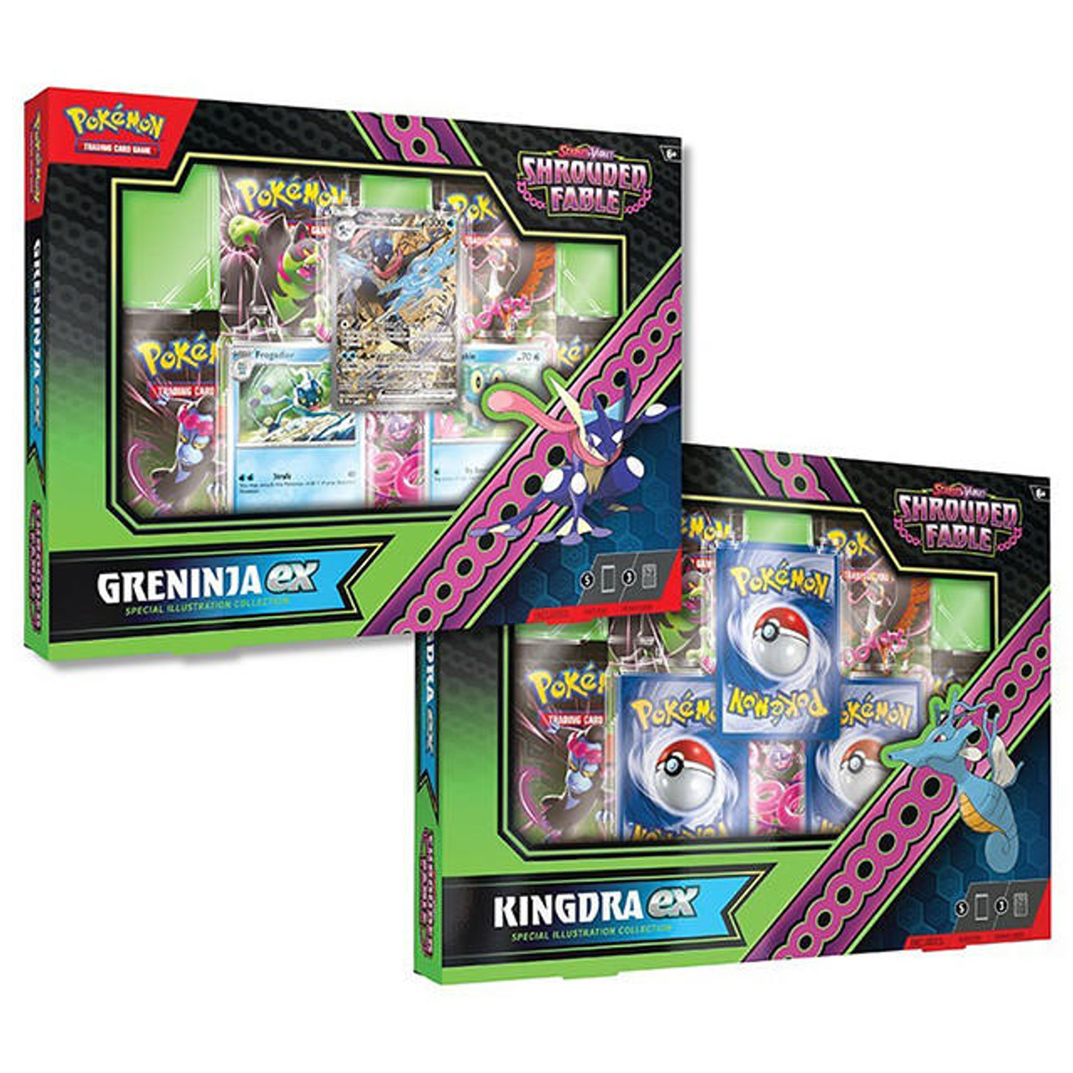 2 cartas promocionales de las dos primeras etapas evolutivas de Greninja o Kingdra