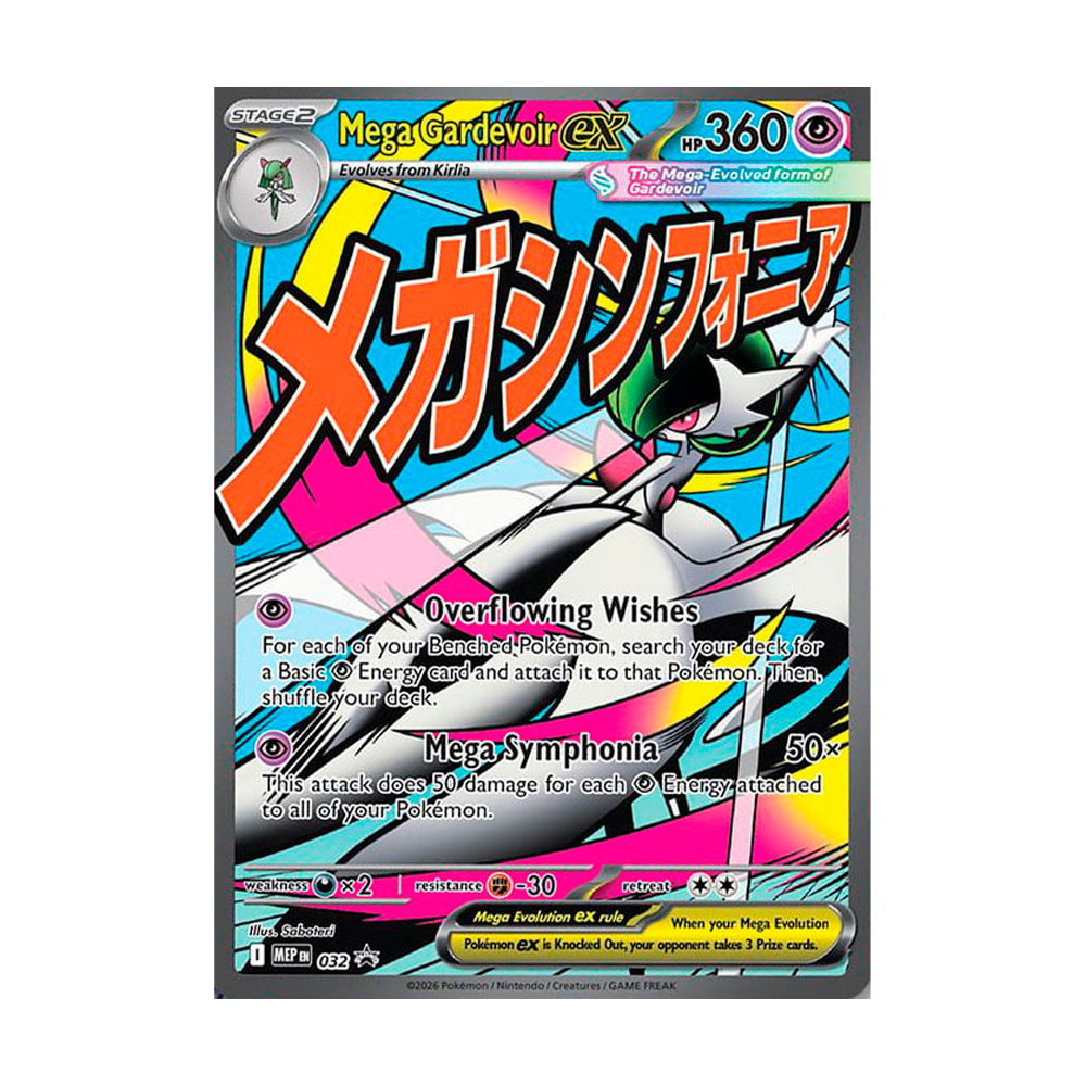1 carta holográfica de promoción de Mega-Lucario ex o Mega-Gardevoir ex